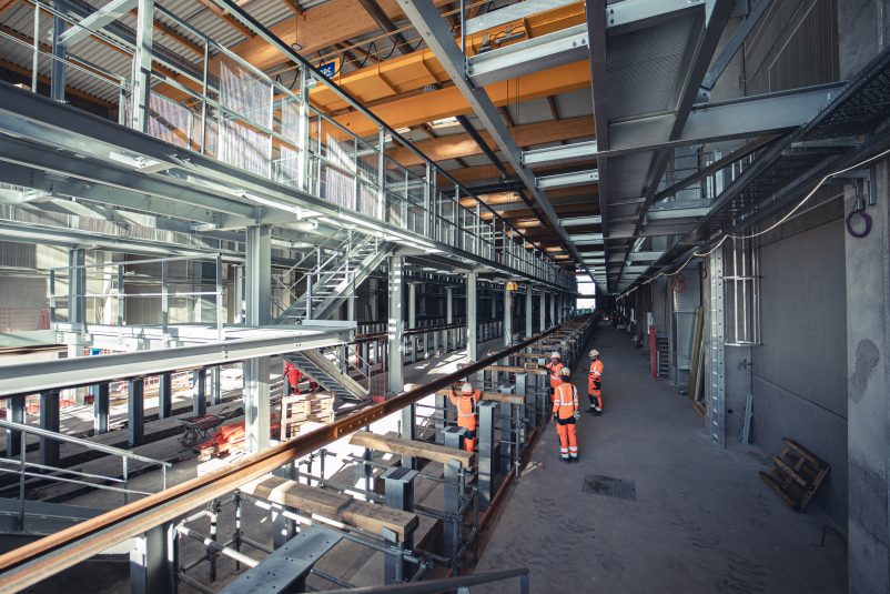 Après six mois d’études, les travaux ont démarré en juillet 2025, mobilisant plusieurs agences d’ETF. La Champenoise des voies ferrées a installé 14 appareils de voie pour la liaison avec le réseau. ETF Clermont-Ferrand assure la pose des 2 000m de voies ballast extérieures, tandis que les équipes de l’agence de Vitrolles interviennent sur les 370 mètres linéaires de voies à l’intérieur de l’atelier. L’agence ETF Caténaire Sud a également été mobilisée pour les travaux d’alimentation jusqu’à l’entrée du nouveau bâtiment.