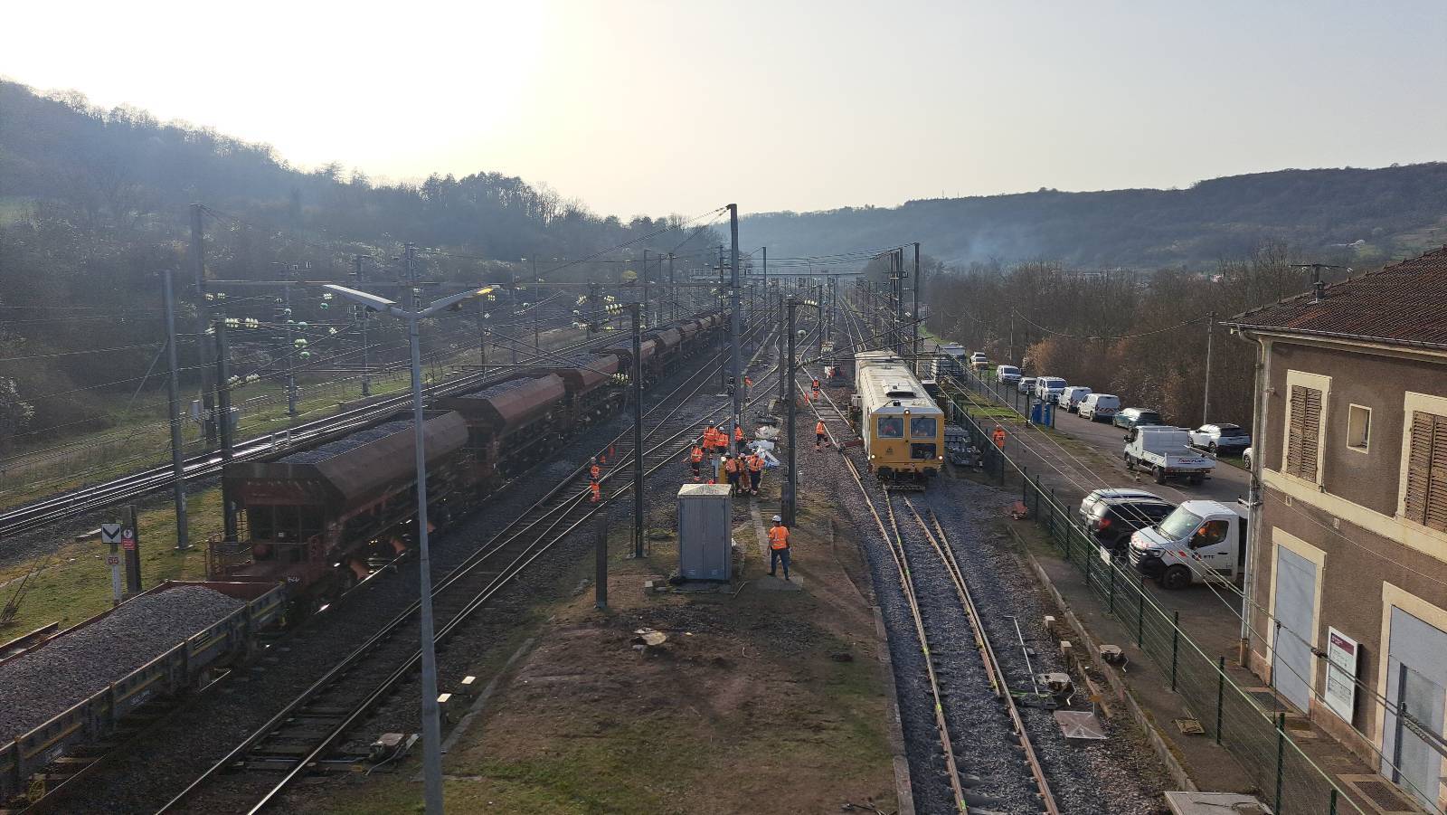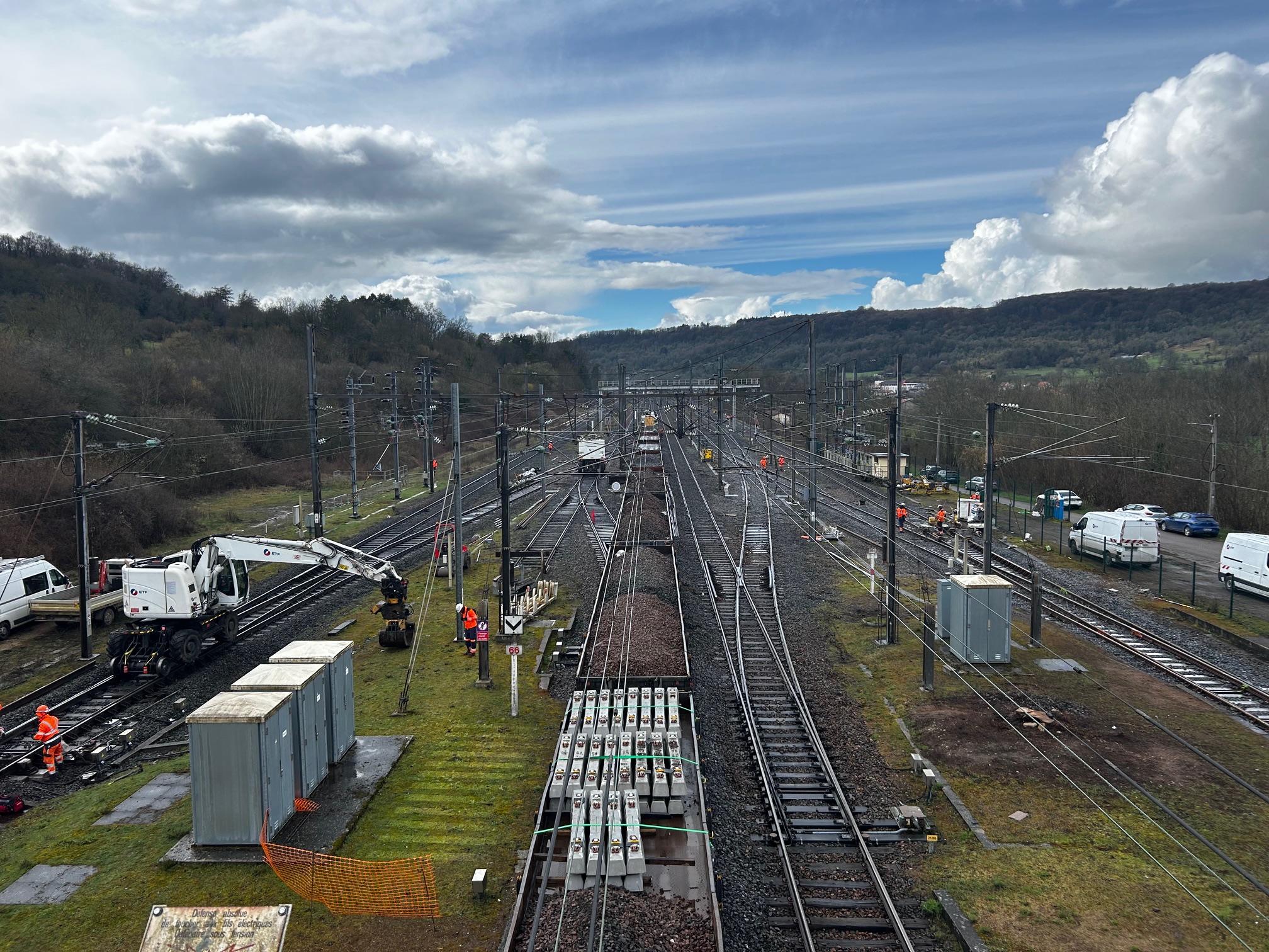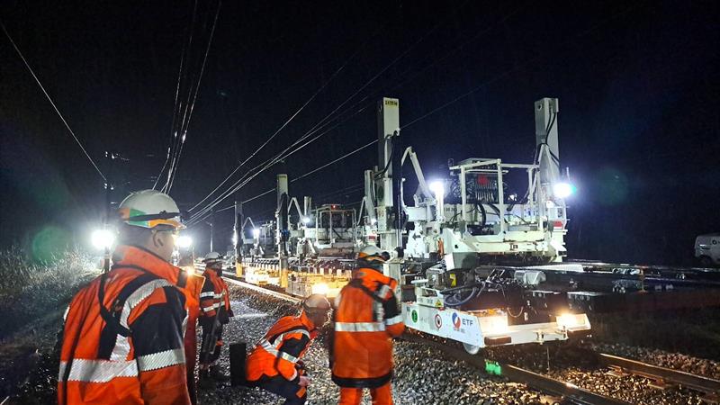 Les équipes voies ont travaillé en étroite collaboration avec ETF Services pour la conduite et l’accompagnement des trains travaux ainsi que pour les prestations de sécurité ferroviaire. Les équipes caténaires d’ETF sont également intervenues pour réaliser les opérations de perchage et de réglage des installations.