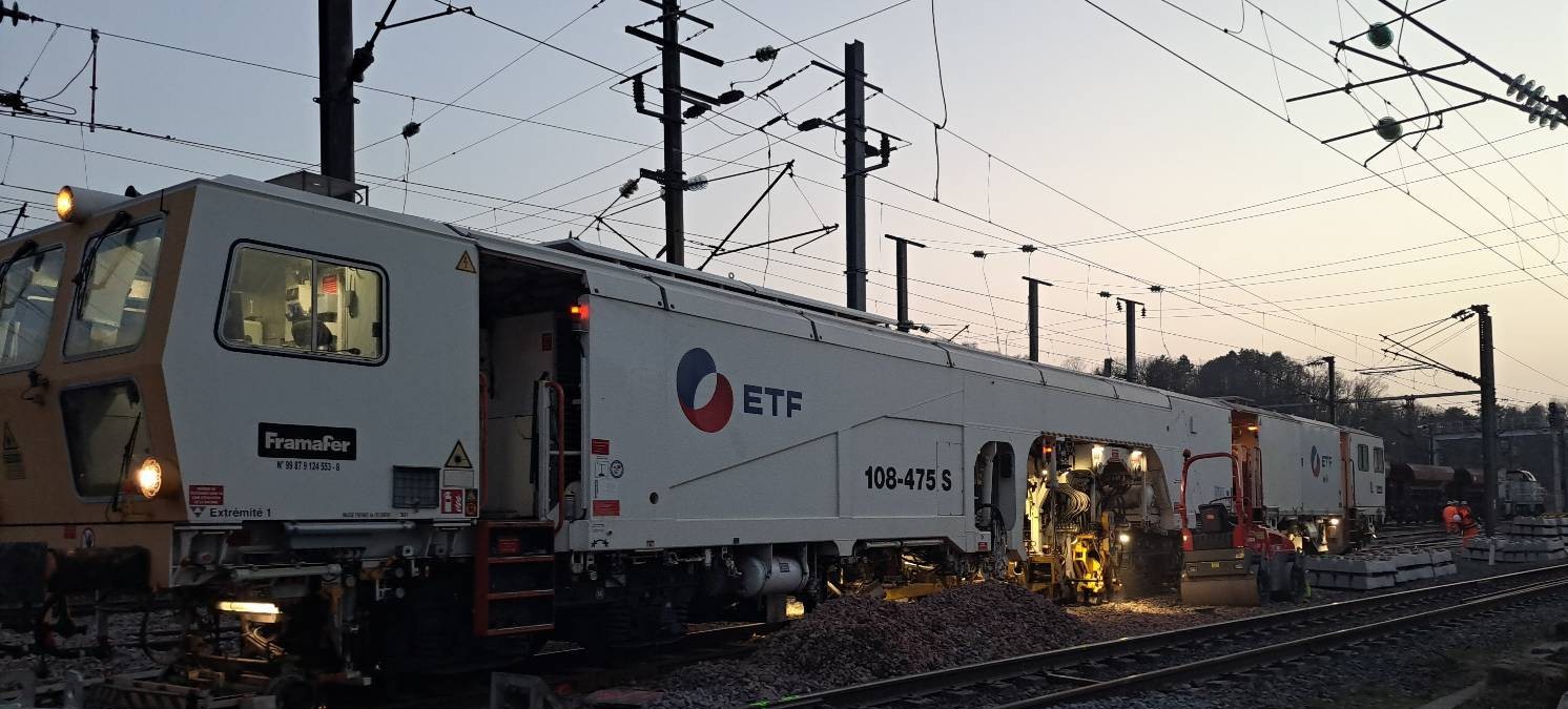Le chantier a bénéficié d’un renfort en matériel mécanisé lourd fourni par l’agence Travaux Mécanisés d’ETF : 4 locomotives, 1 bourreuse, 1 stabilisateur et plusieurs engins PEM/LEM ont été déployés, permettant de maintenir un rythme soutenu et de livrer les travaux dans les délais impartis.